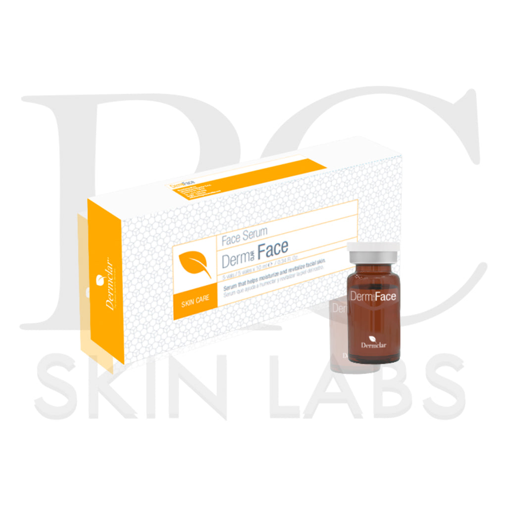 DermFace is a mixture in precise and ideal proportions of hyaluronic acid, DMAE, Argireline, Leuphasyl, Vitamin C, Vitamin E, zinc, Cobalt, Magnesium, and Lithium that helps to diminish the photo-aging signs such as dull, dehydrated, sagging wrinkled and hyperpigmented skin.