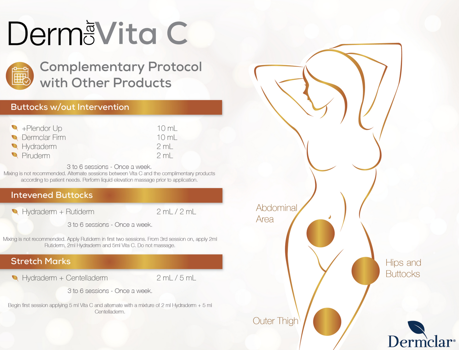 The product can be applied weekly for 4 * 6 consecutive sessions. Use 5ml of Vitamin C depending on how much photodamage is present and the size of the treated area.
