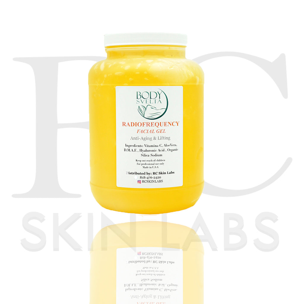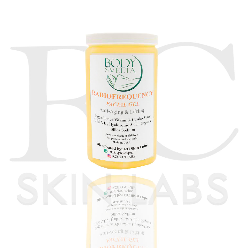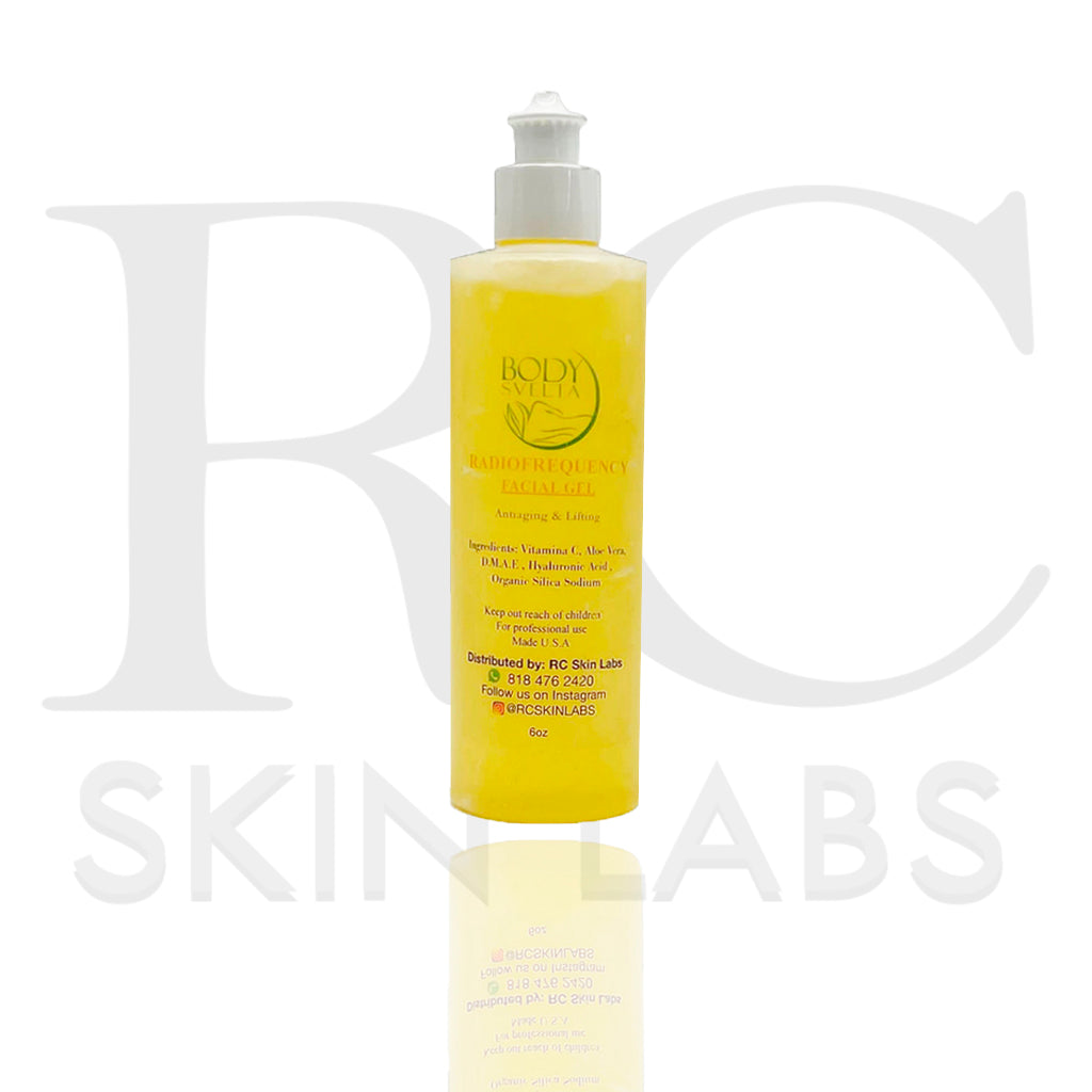 Our radiofrequency gel contains a blend of extracts that includes Hyaluronic Acid, DMAE, Vitamin C 20%, Sodium Pyruvate, Organic Silica & Aloe Vera which are recognized in the beauty industry to enhance "Anti-Aging, Moisturizing, Lifting, Wrinkle & Antioxidant" treatments.